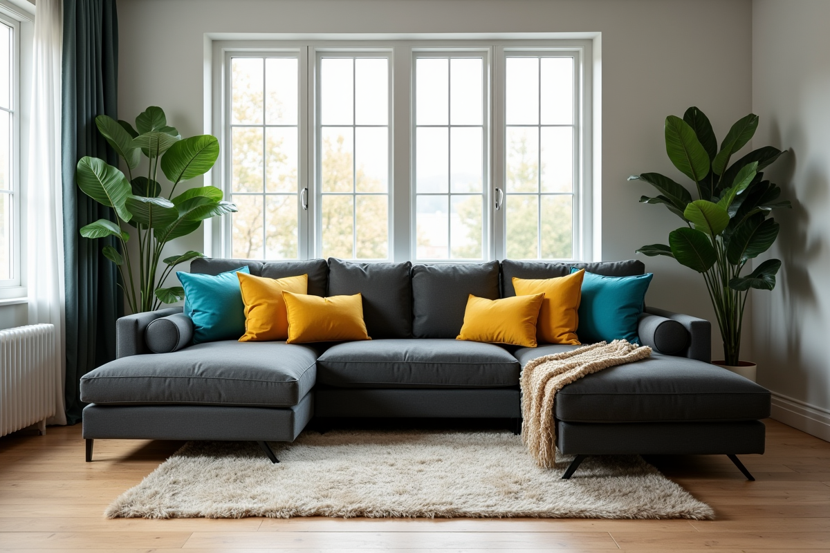 Pour injecter des touches de couleur sur un canapé gris, jouez la carte de la superposition et variez les formats. Un carré moutarde, un rectangle graphite, un rond vert sapin : chaque coussin apporte sa nuance, son rythme, sans jamais détonner. Les spécialistes de la décoration s’accordent sur ce point : osez les couleurs affirmées pour une ambiance dynamique, les tons neutres pour une atmosphère douce, ou même quelques reflets métalliques pour attraper la lumière.