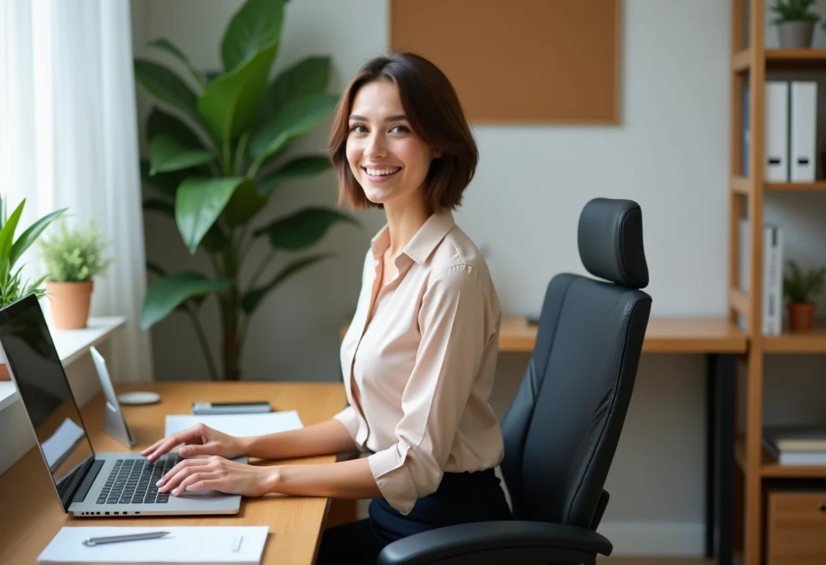 Ajoutez une note végétale ou quelques matières naturelles pour rééquilibrer l’ambiance. Couleurs douces, lumière naturelle, accessoires adaptés (comme ceux d’AUM World ou Équilibre France Ergonomie) donnent du caractère à l’espace et soutiennent la dynamique de travail, du support pour ordinateur au siège dynamique.